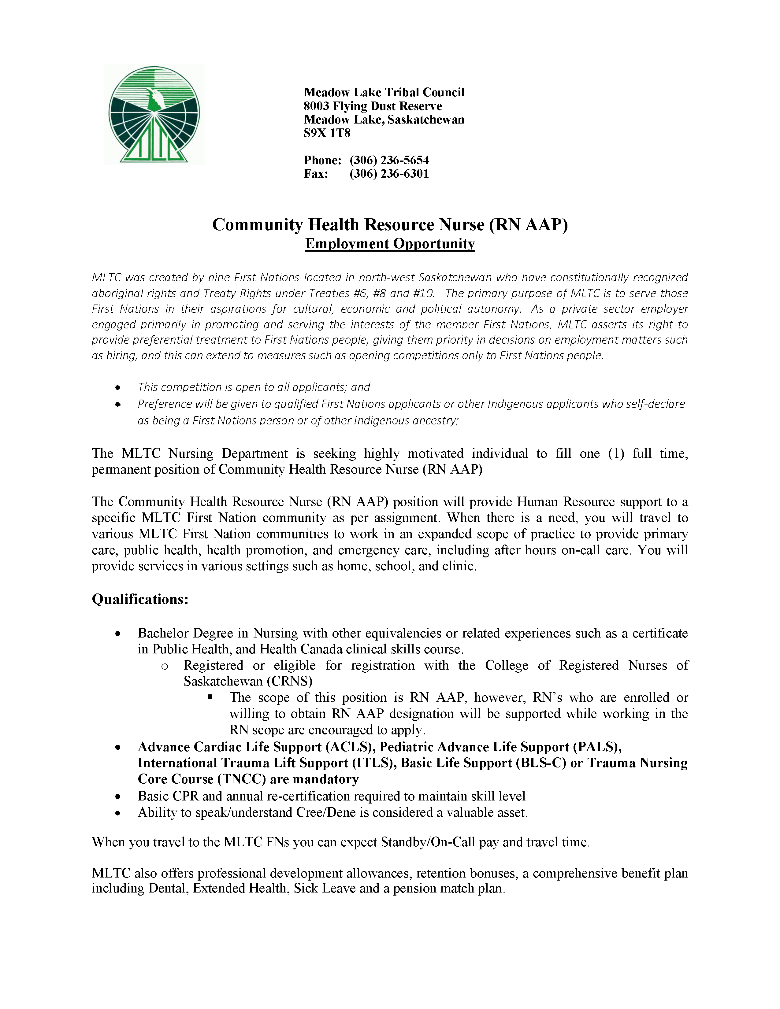 Community Health Resource Nurse (RN AAP) – MLTC (click to expand)
