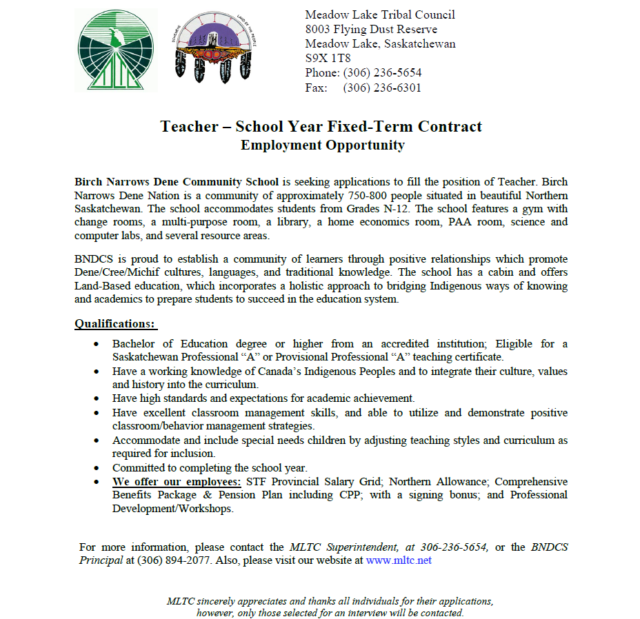 Teacher – School Year Fixed-Term Contract (MLTC)