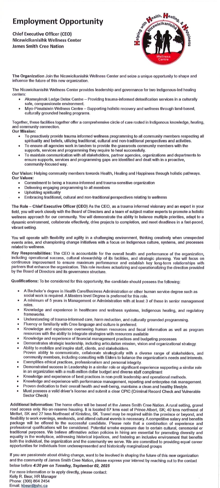 Chief Executive Officer (CEO) James Smith Cree Nation
