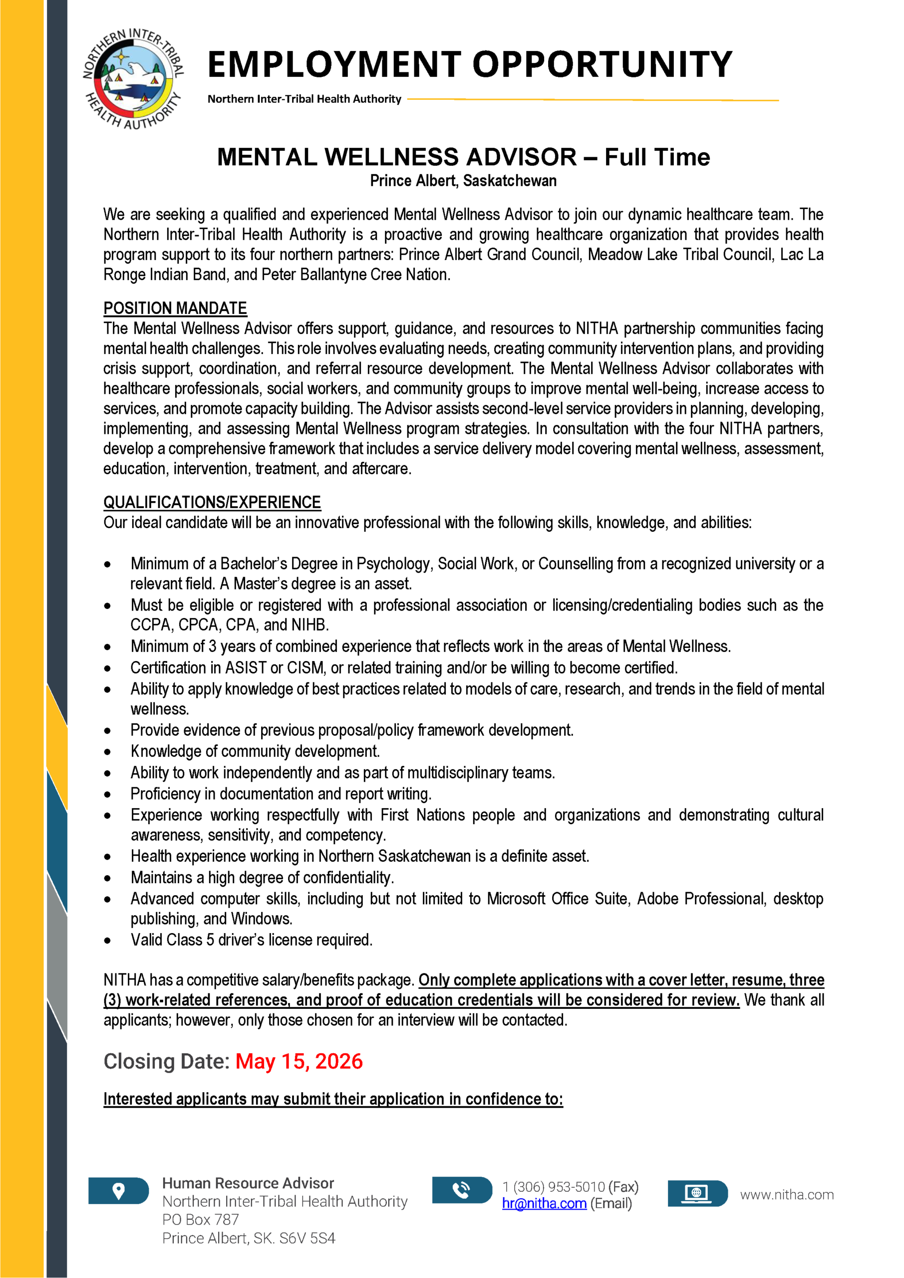 The NITHA Partnership, a First Nations driven organization, is a source of collective expertise in culturally based, cutting edge professional practices for northern health services in our Partner Organizations.