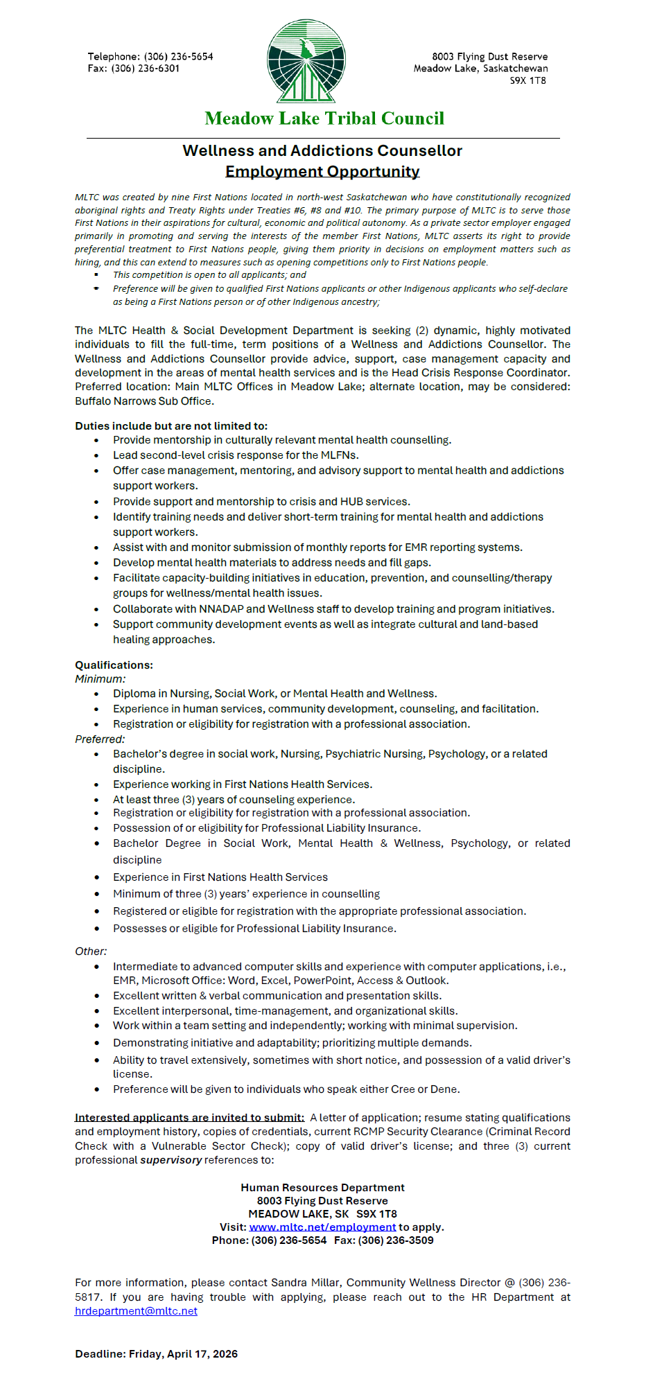 Wellness and Addictions Counsellor (MLTC)